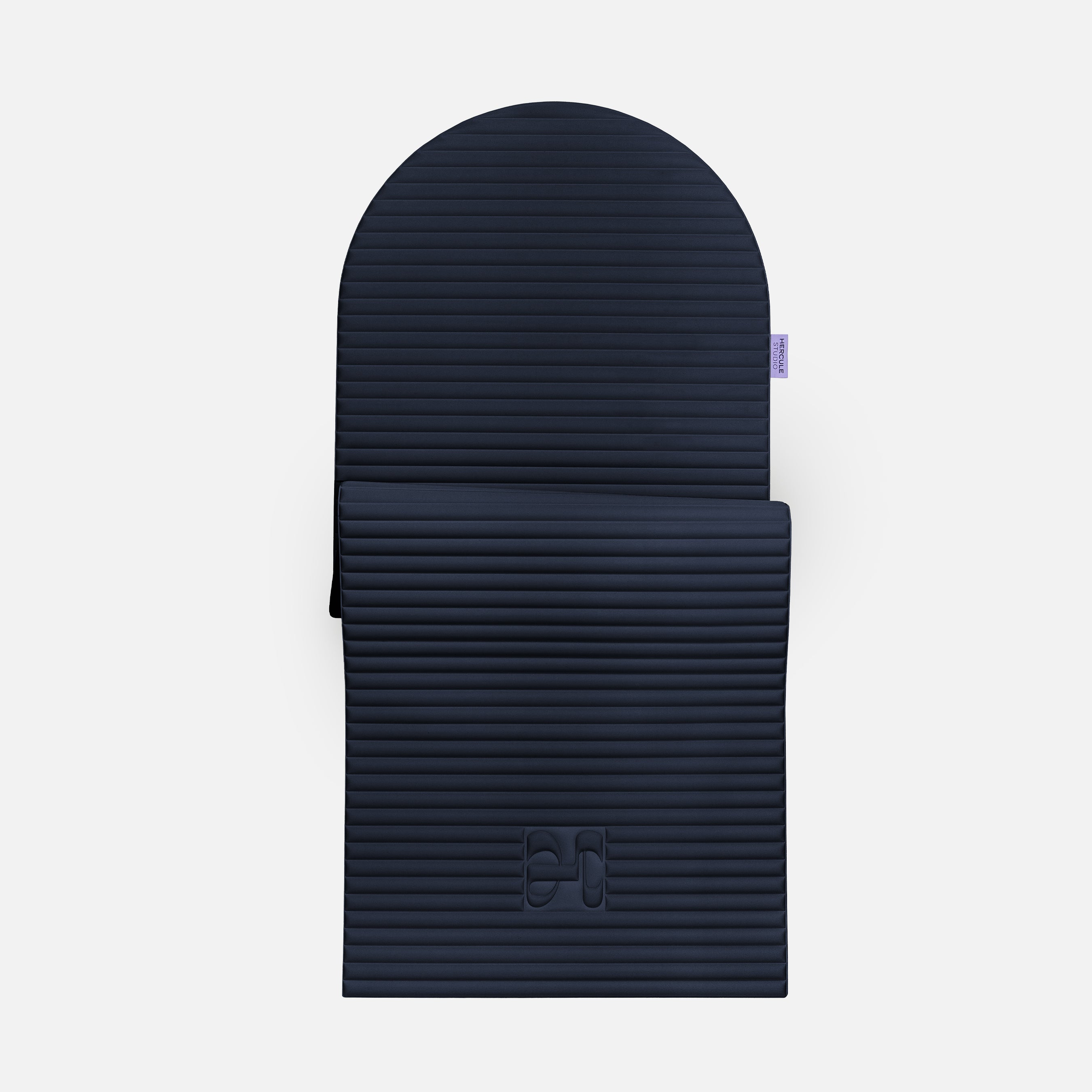 Vue semi-roulée tapis yoga noir Outrenoir, made in France, PVC-free, texture wavy pour stabilité et alignment