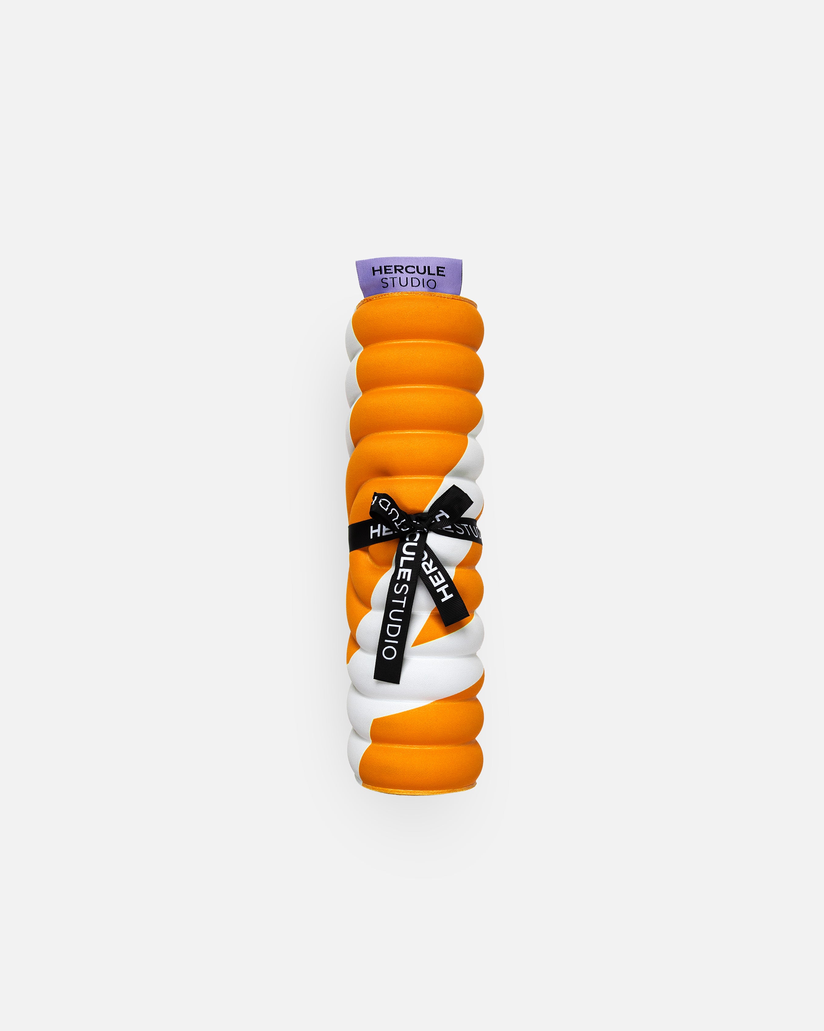 Mini tapis de sol pad de confort de la marque hercule studio modèle galé imprimé bari couleur orange pop packshot roulé
