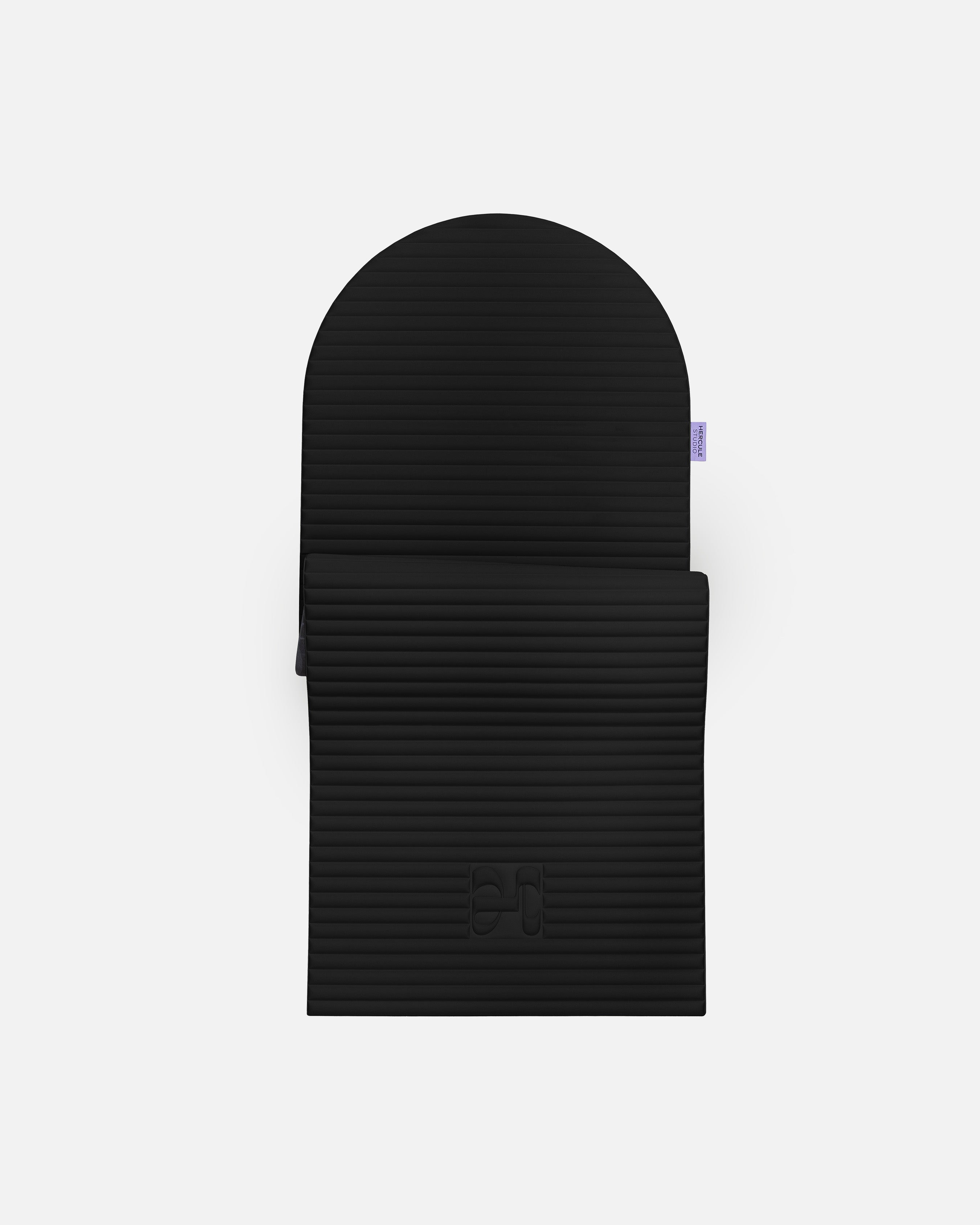 Sa surface au relief bombé apporte confort, sensorialité et son épaisseur de 0,8 cm garantit un maintien ferme et accueillant à la fois. Sa couleur Outrenoir tire son inspiration du peintre français Pierre Soulages et de sa quête perpétuelle de lumière et de clarté à travers la réflexion de la lumière sur des surfaces noires. Le noir révèle les courbes et les reliefs du Tapis de sport Archy en toute élégance et minimalisme. Il est un intemporel de la mode et du design. Archy Outrenoir s’inscrit dans la continuité d’une collection chic, graphique et percutante.