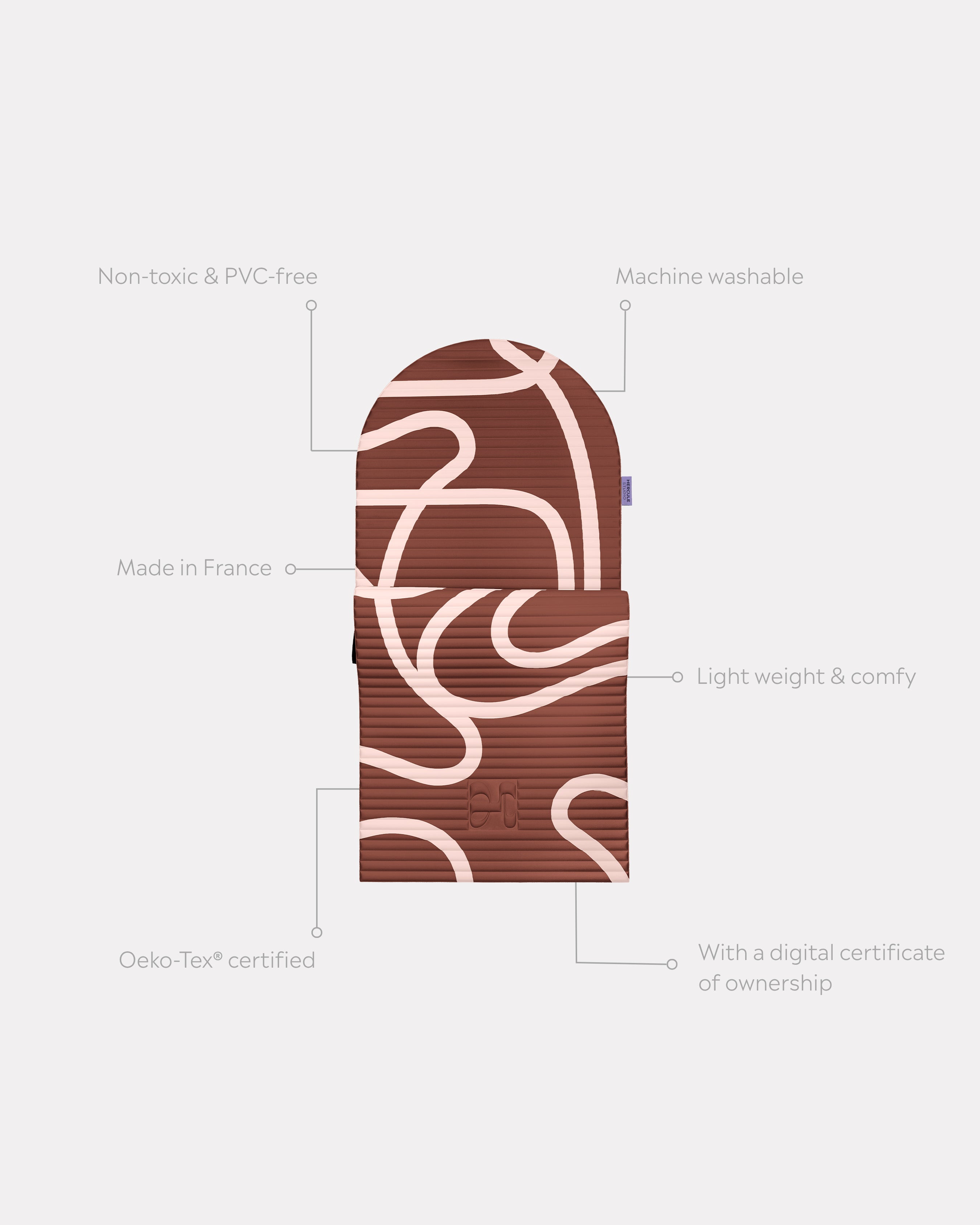 Its domed surface provides comfort and sensoriality, and its 0.8 cm thickness guarantees a firm yet welcoming fit. Its Bari print is the second print designed by Hercule Studio. It was born from a desire to bring dynamism to the Archy fitness mat, as if to illustrate movement. Its undulating shapes are obtained through the reinterpretation of one of the “H” symbols specific to the brand. It is part of the brand's desire to offer sports objects on the border between sports accessories and art and decorative objects.
